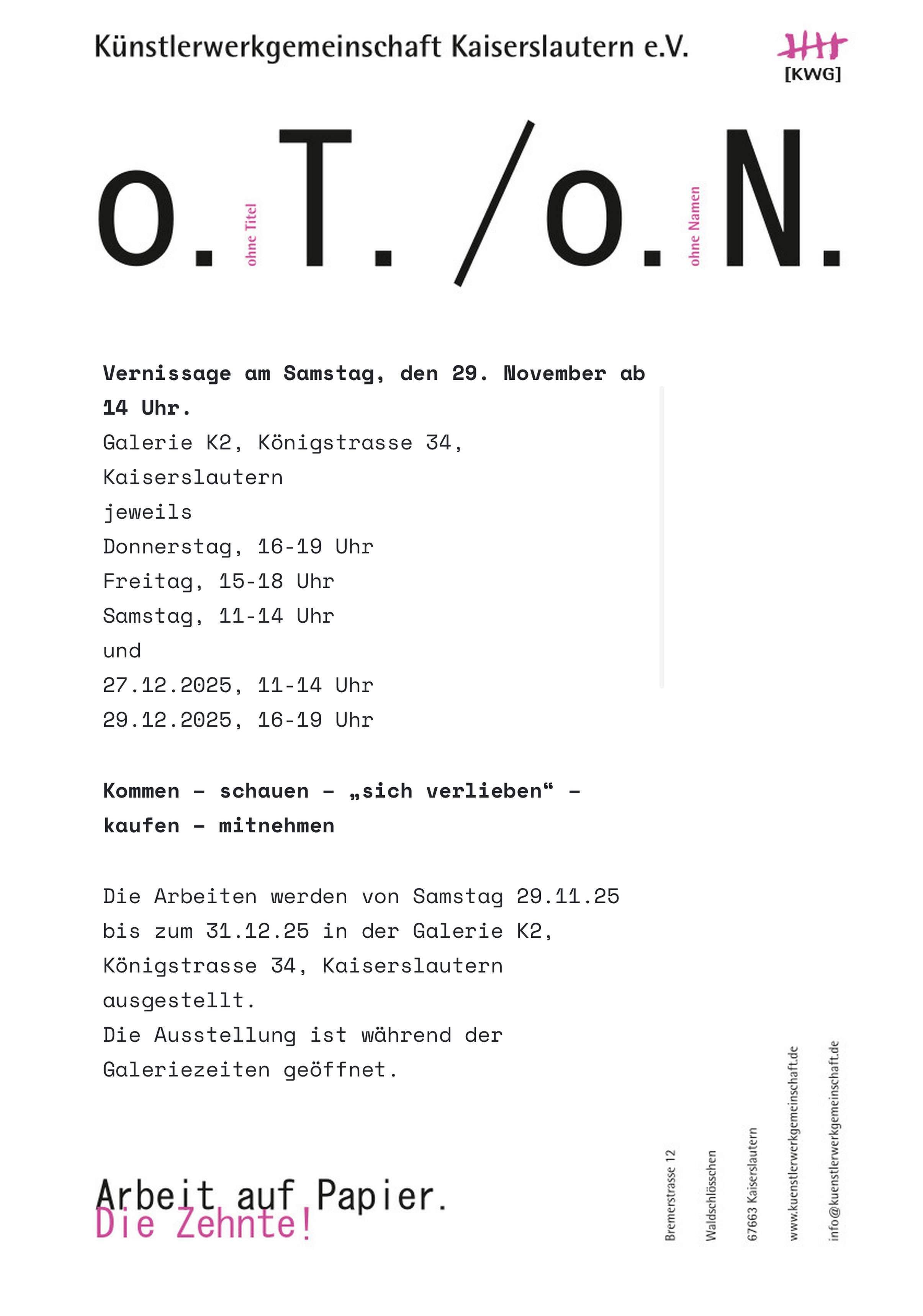 Ausstellung "o. T./o. N."