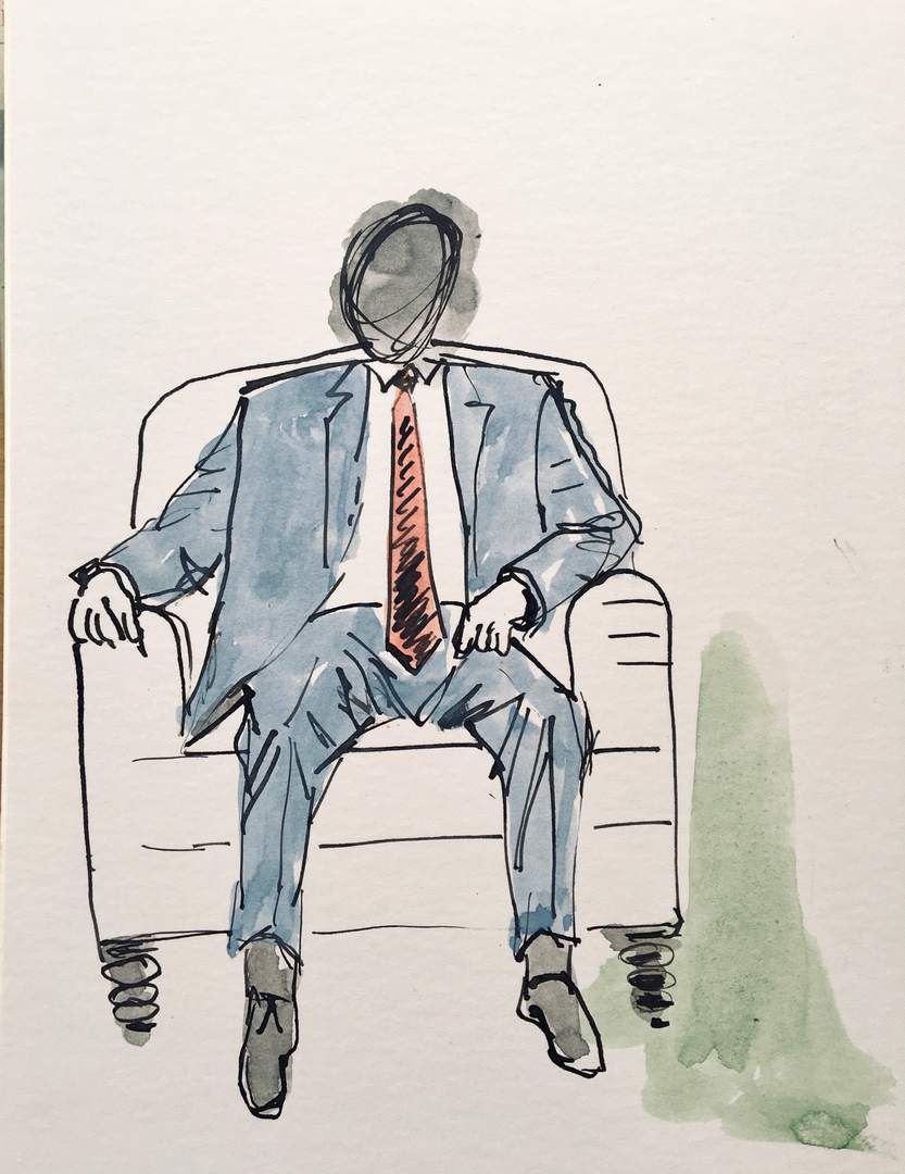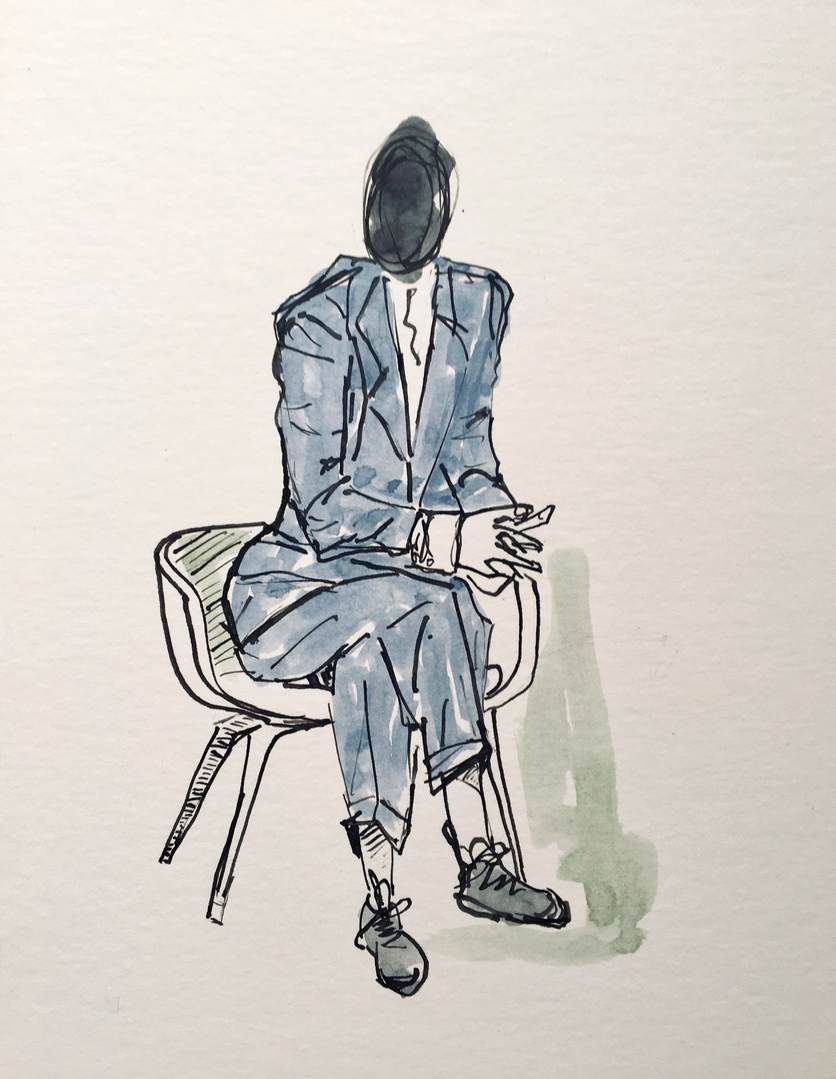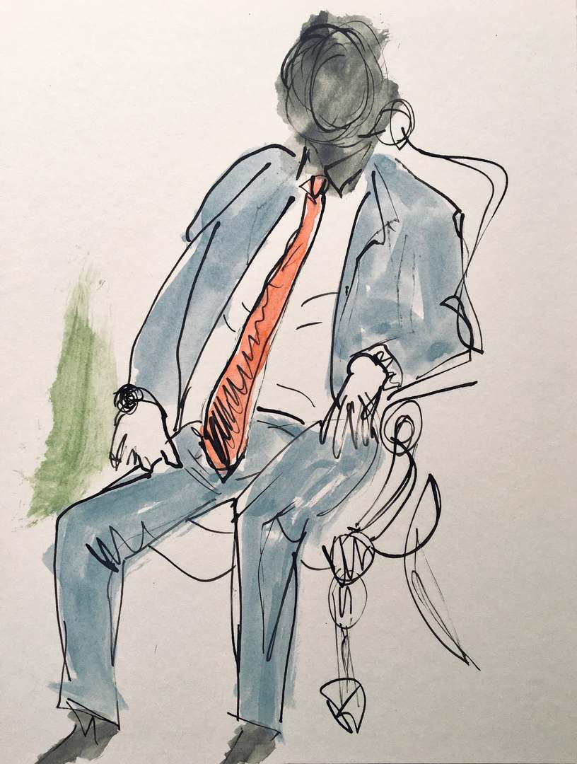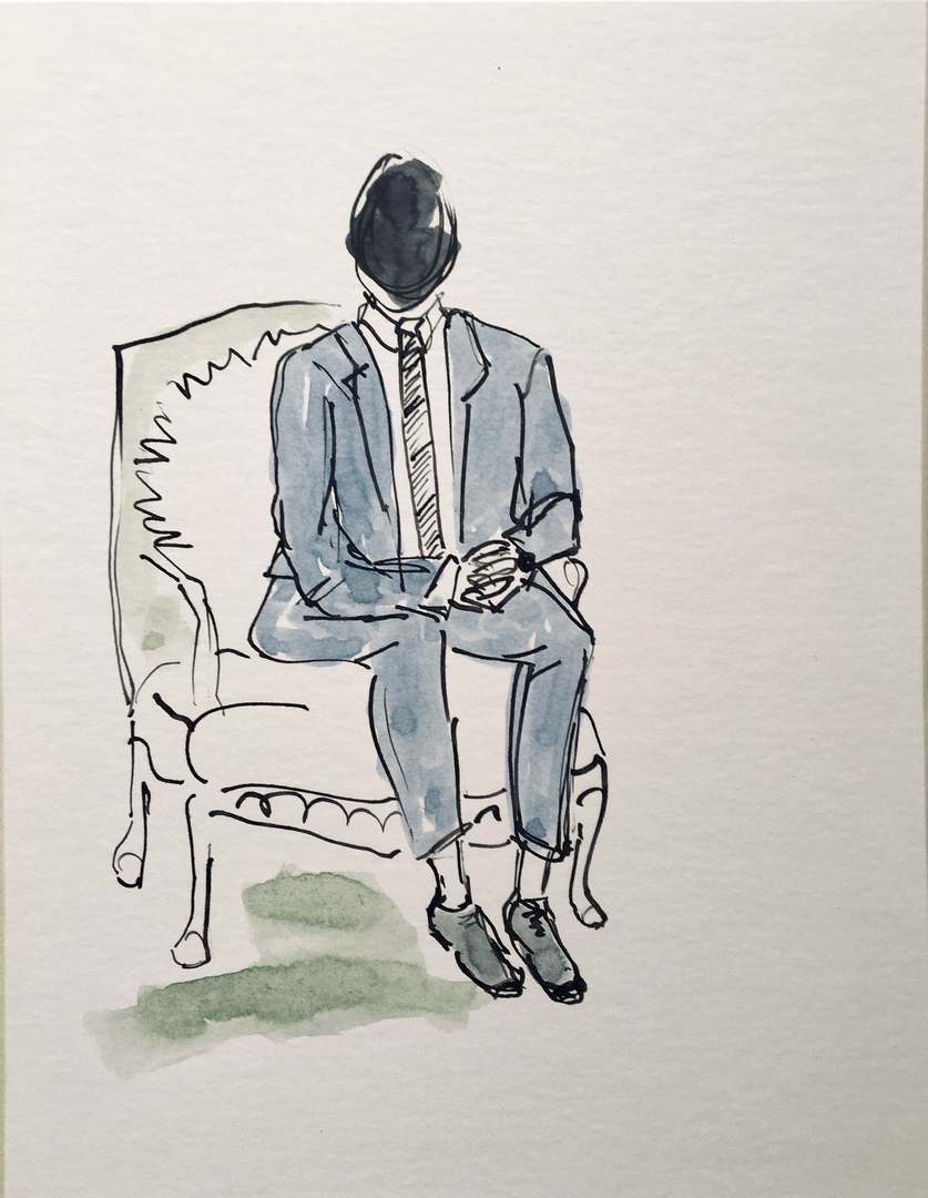 listening #1 (2020), Tusche und Aquarell auf Passpartoutkarton