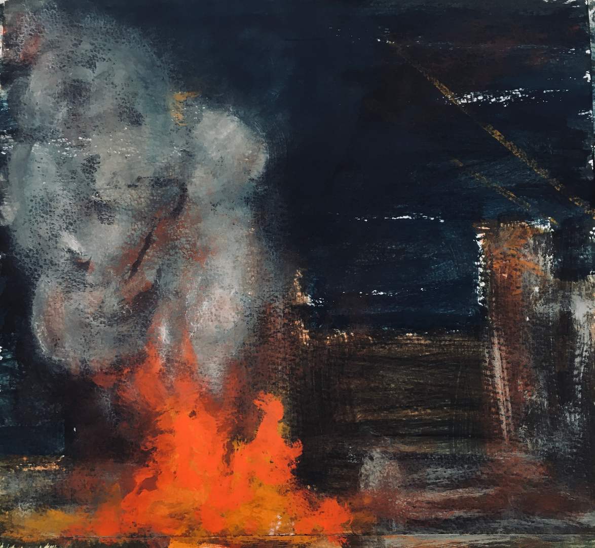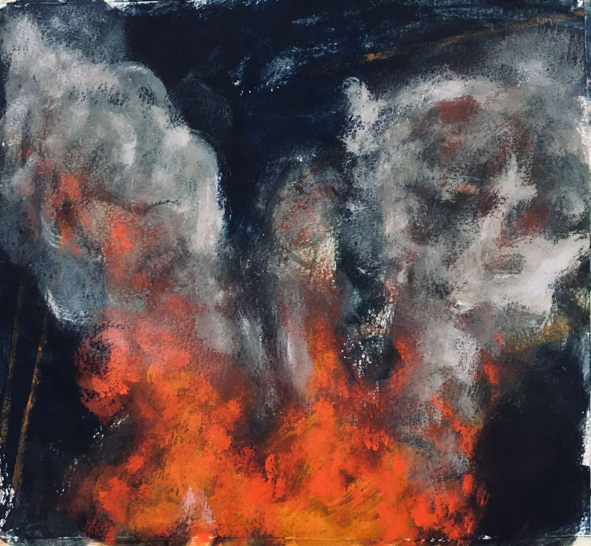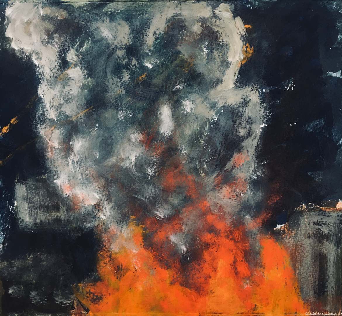 abendrot #1 (2021), 40 x 40, Tempera auf Aquarellpapier