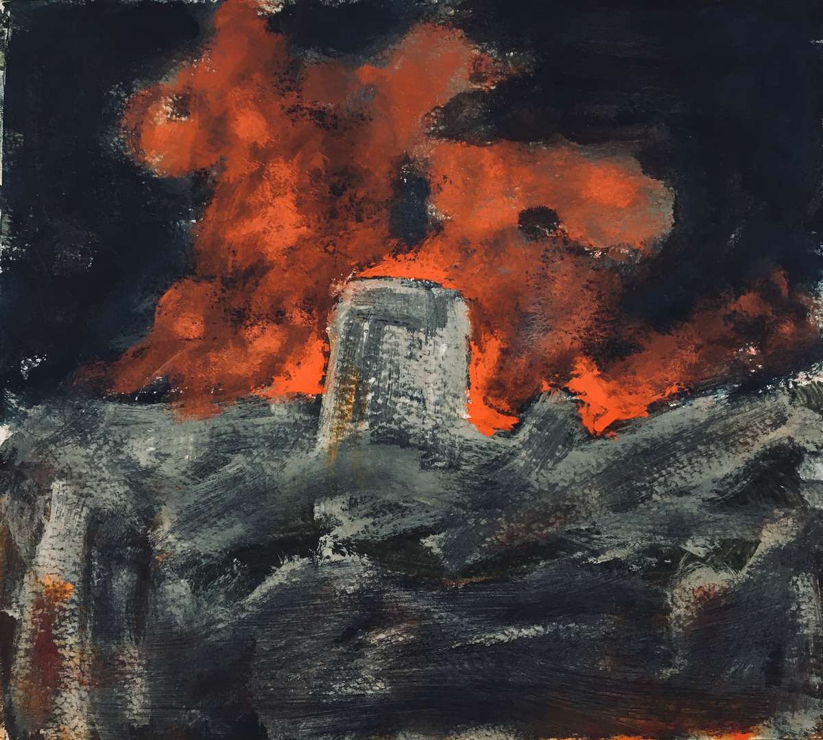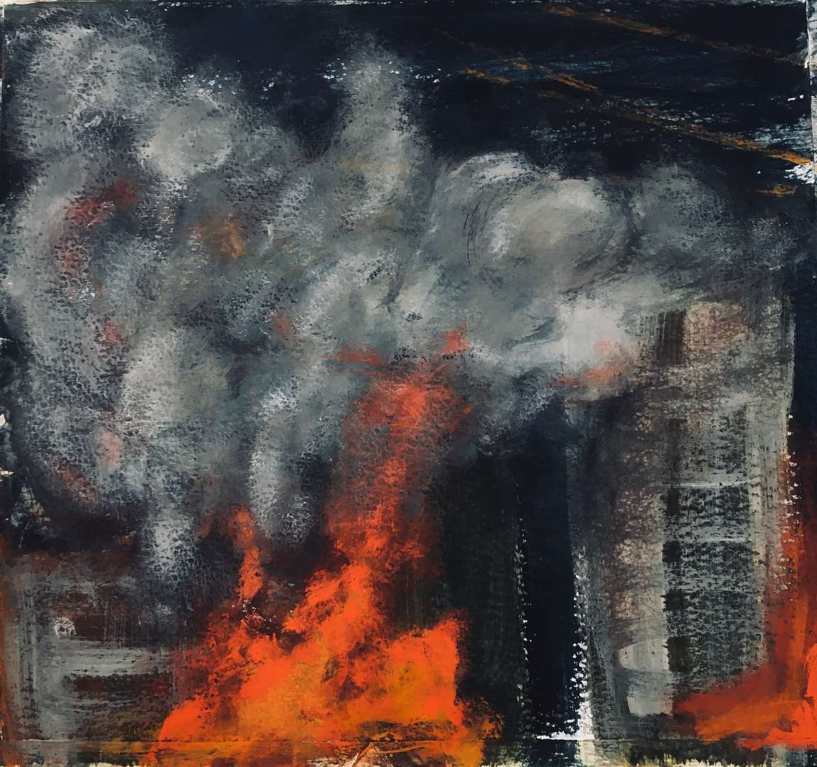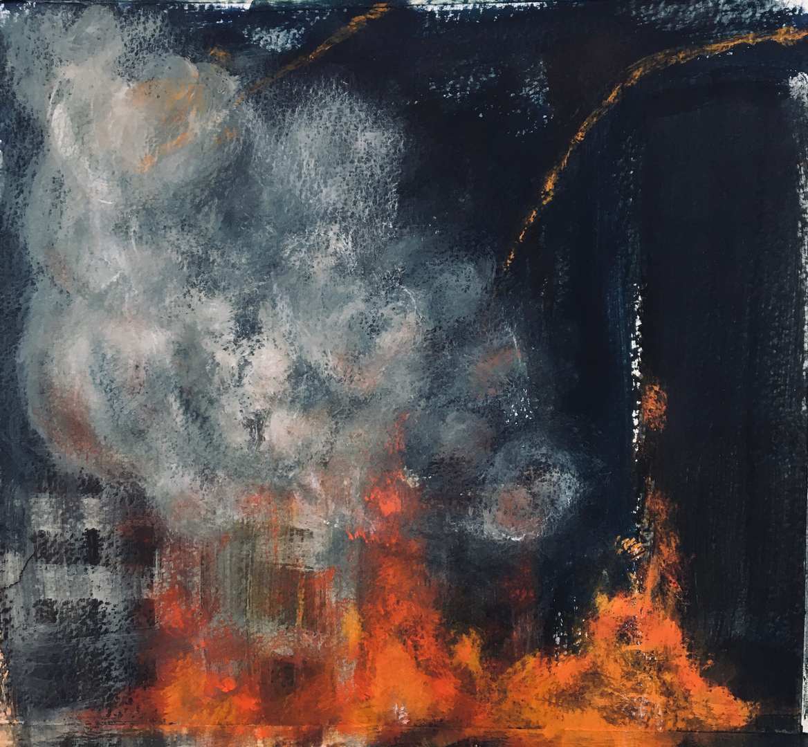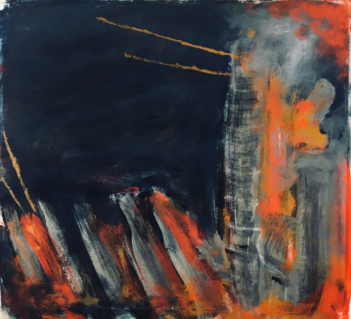 abendrot #5 (2021), 40 x 40, Tempera auf Aquarellpapier