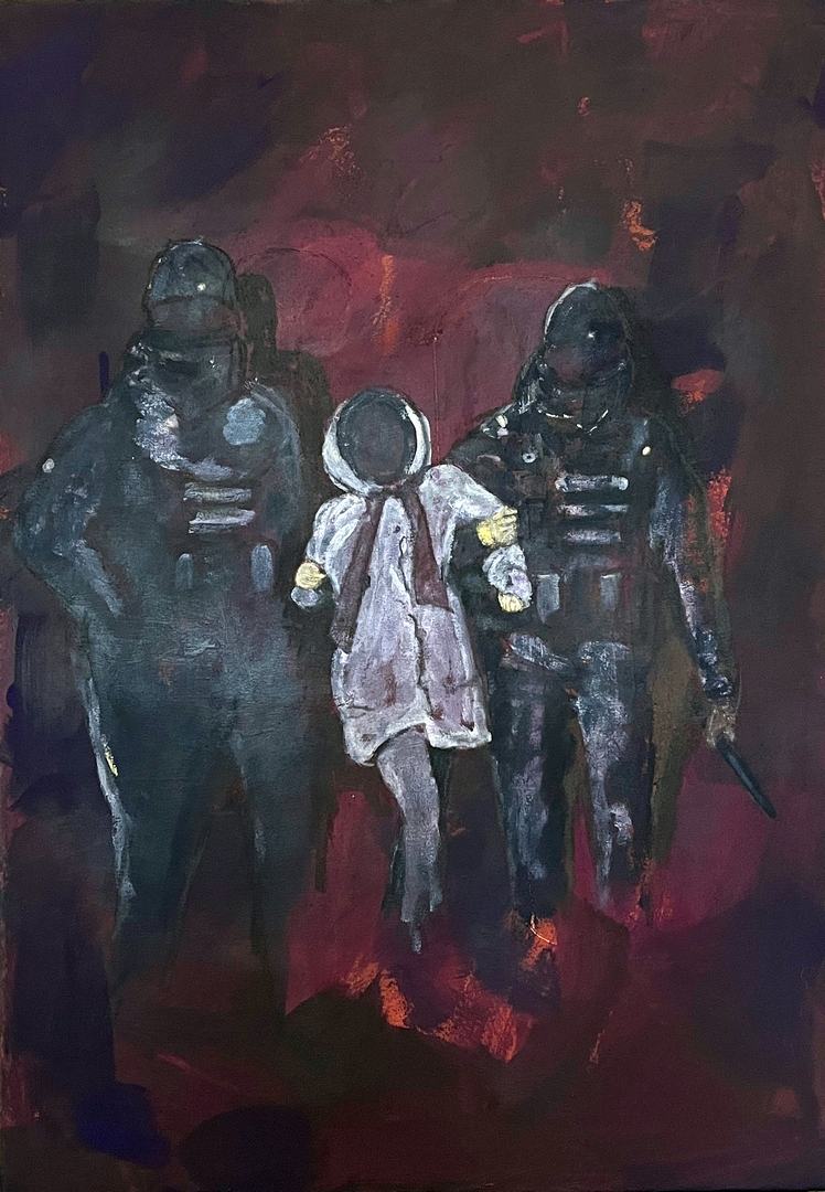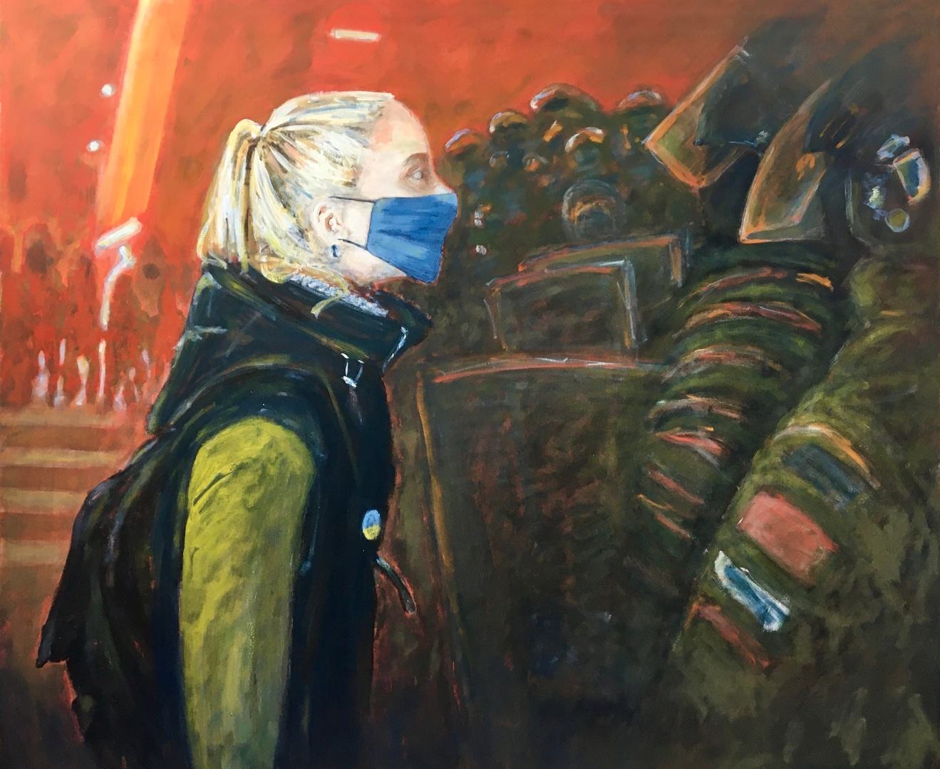 meisje met mondkapje/ дівчина з маскою (2022), 100 x 120, Tempera