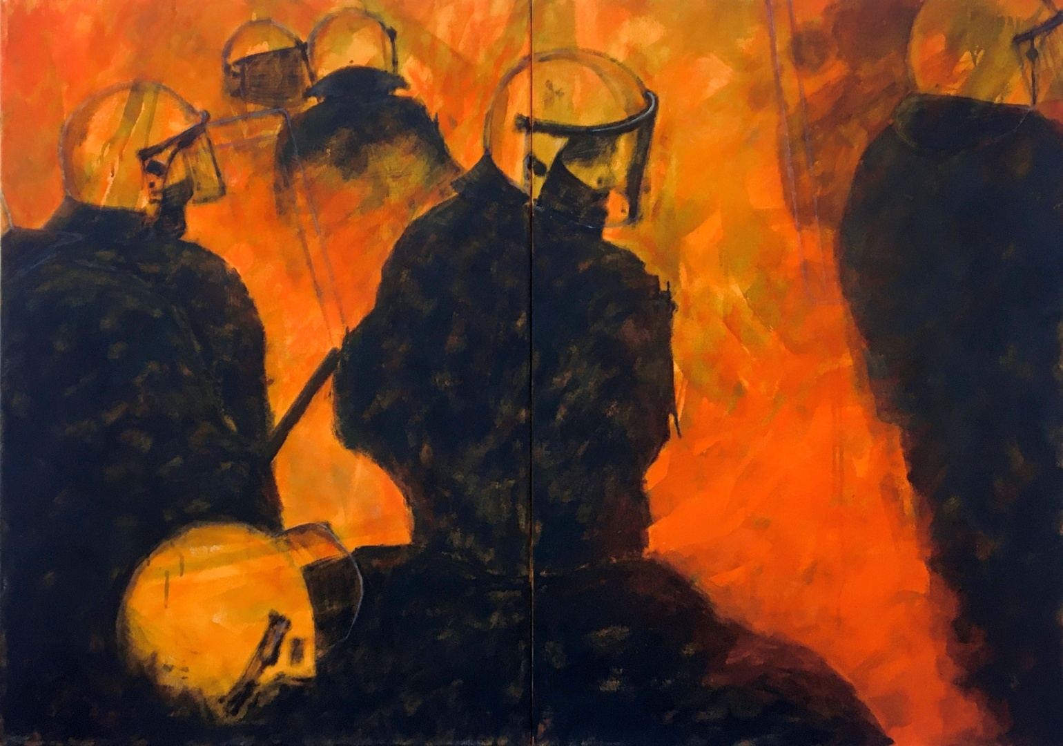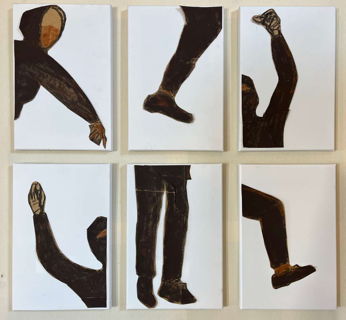 o. T. (NO) (2025), bemalter Karton auf Leinwand, je 30 x 20