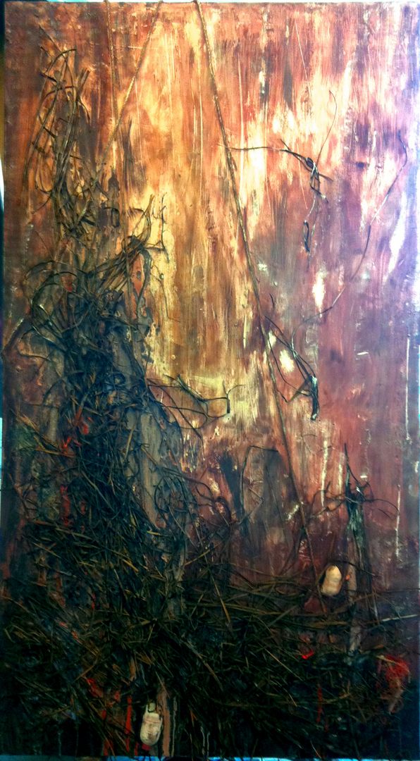 vergangenes bricht auf (2009), 100 x 180 cm, Mischtechnik/verschiedene Materialien