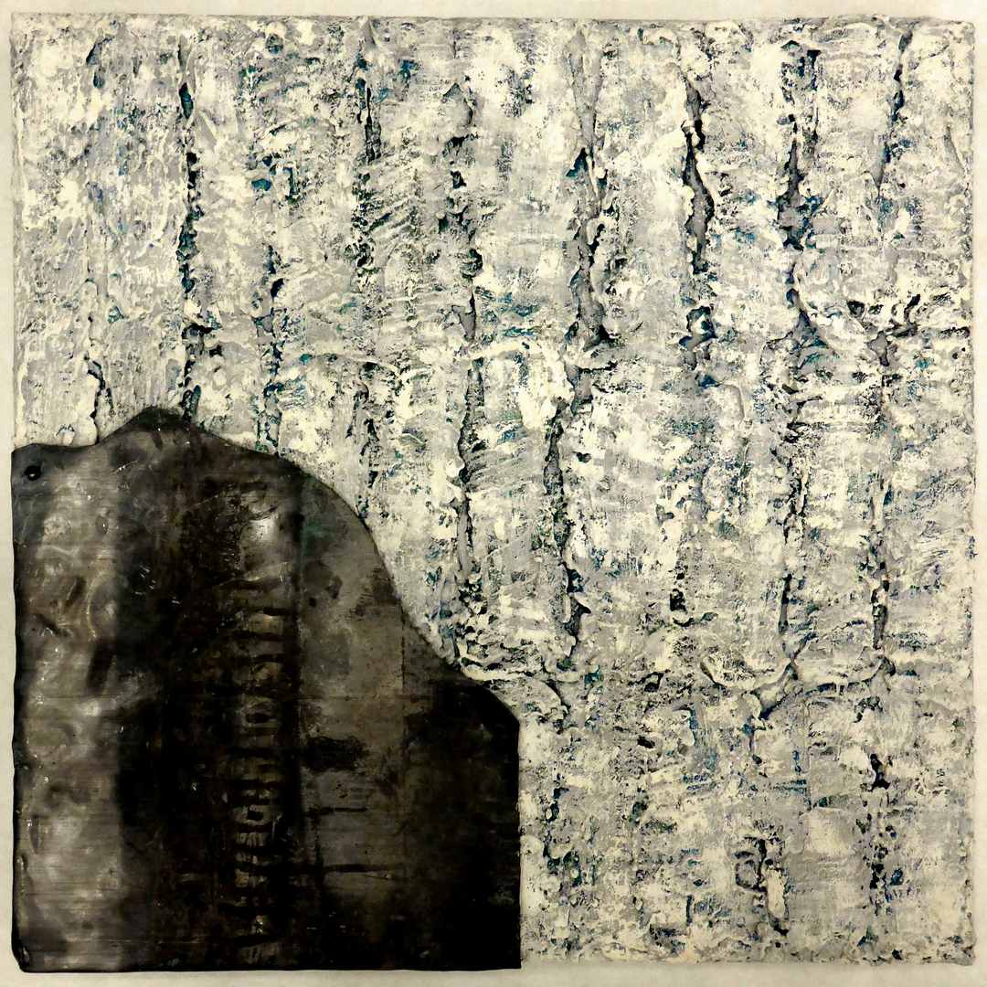 Bleierne Zeiten #2 (2015), 50 x 50 x 10, Mixed Media auf Leinwand (Leinwand, Blei)