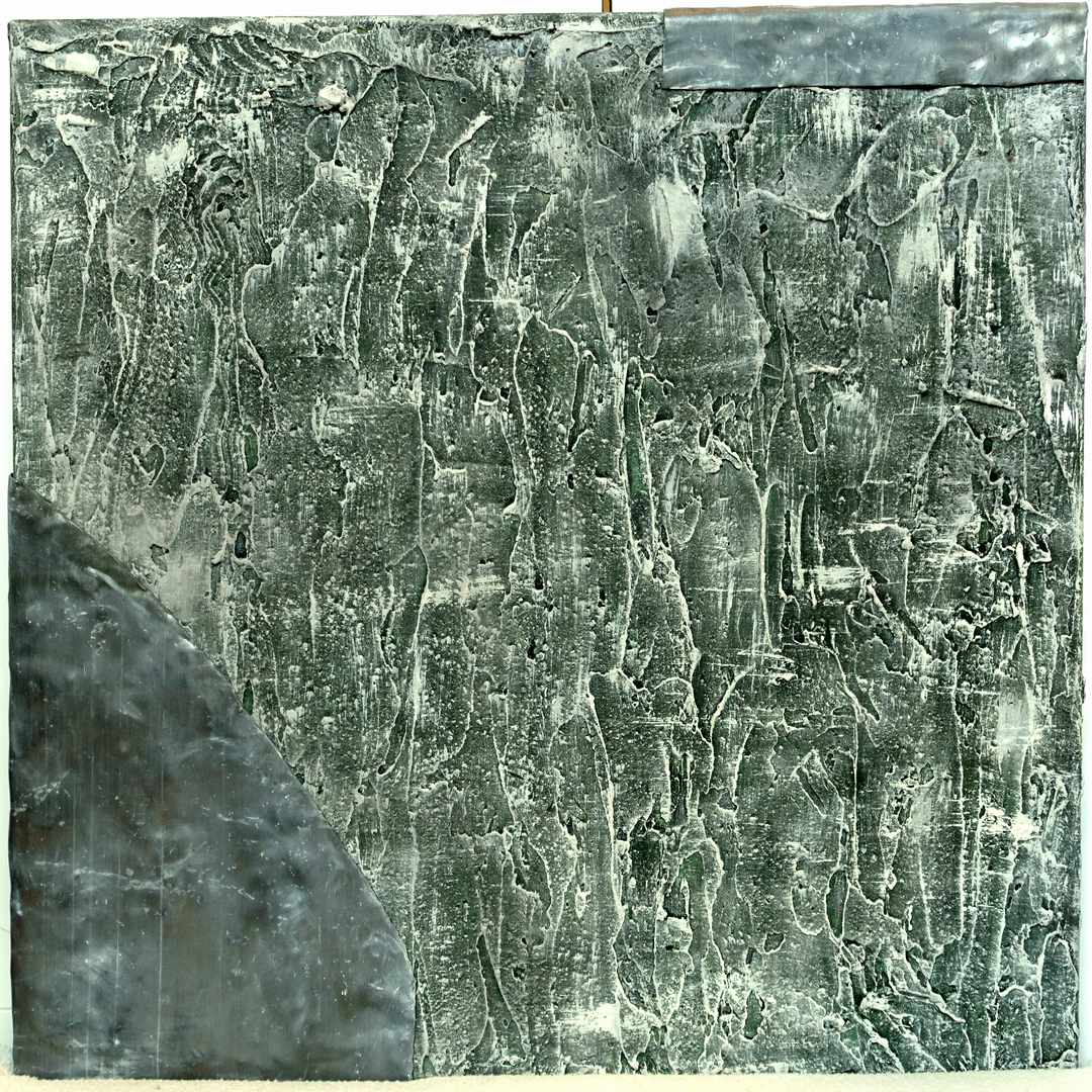 Bleierne Zeiten #1 (2015), 50 x 50 x 10, Mixed Media auf Leinwand (Leinwand, Blei)