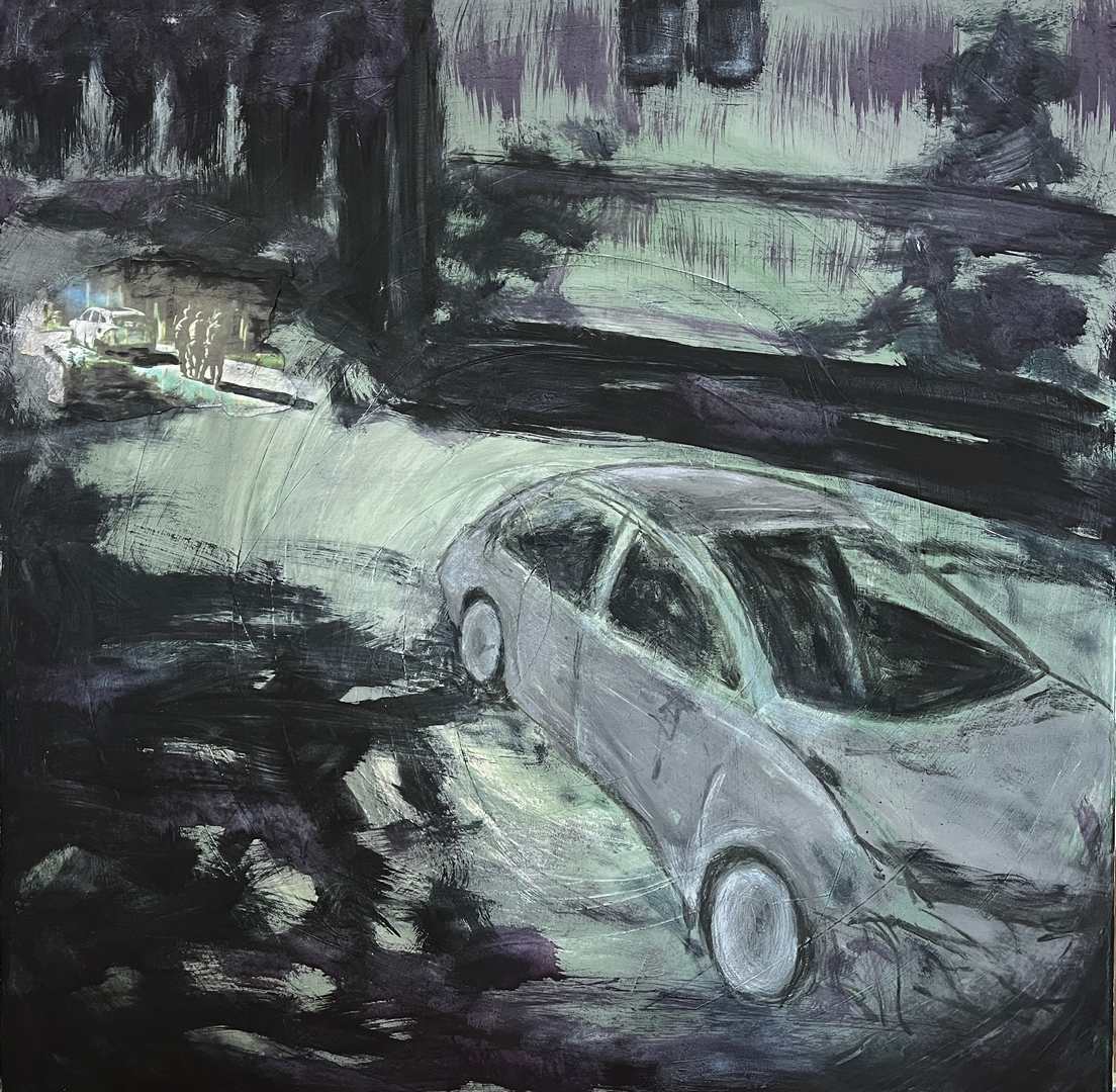 ausgeleuchtet (2023), 80 x 80, Tempera auf Leinwand