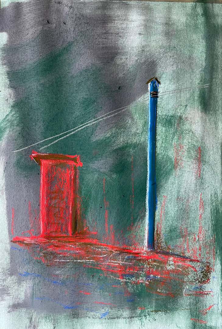 o. T. (2022), ca. 38 x 25, Pastell auf Acryl