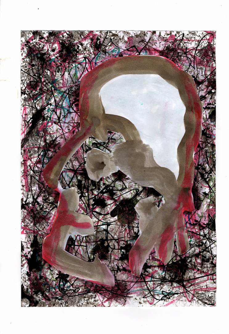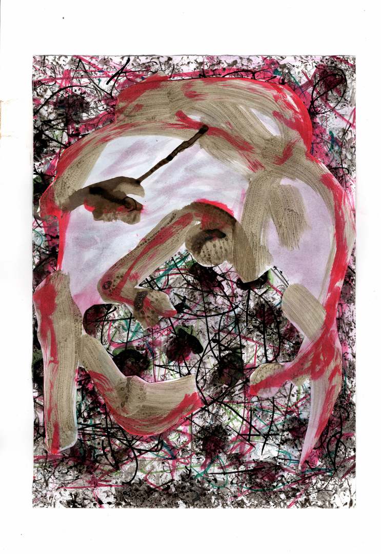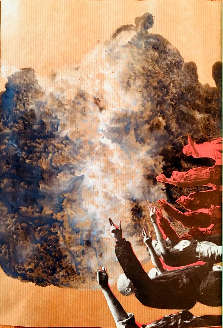 o. T. (2022), Mixed Media (Tusche, Collage, Ölpastellkreide)