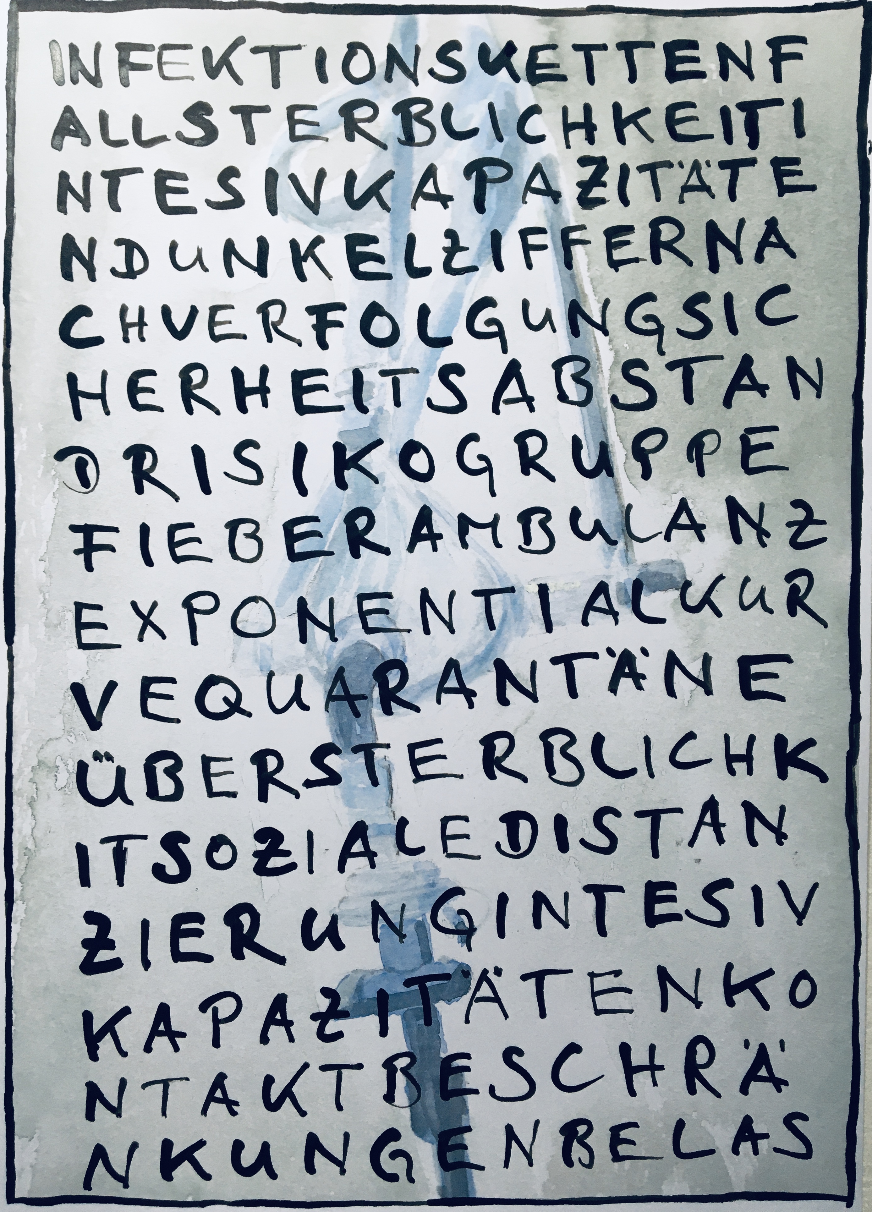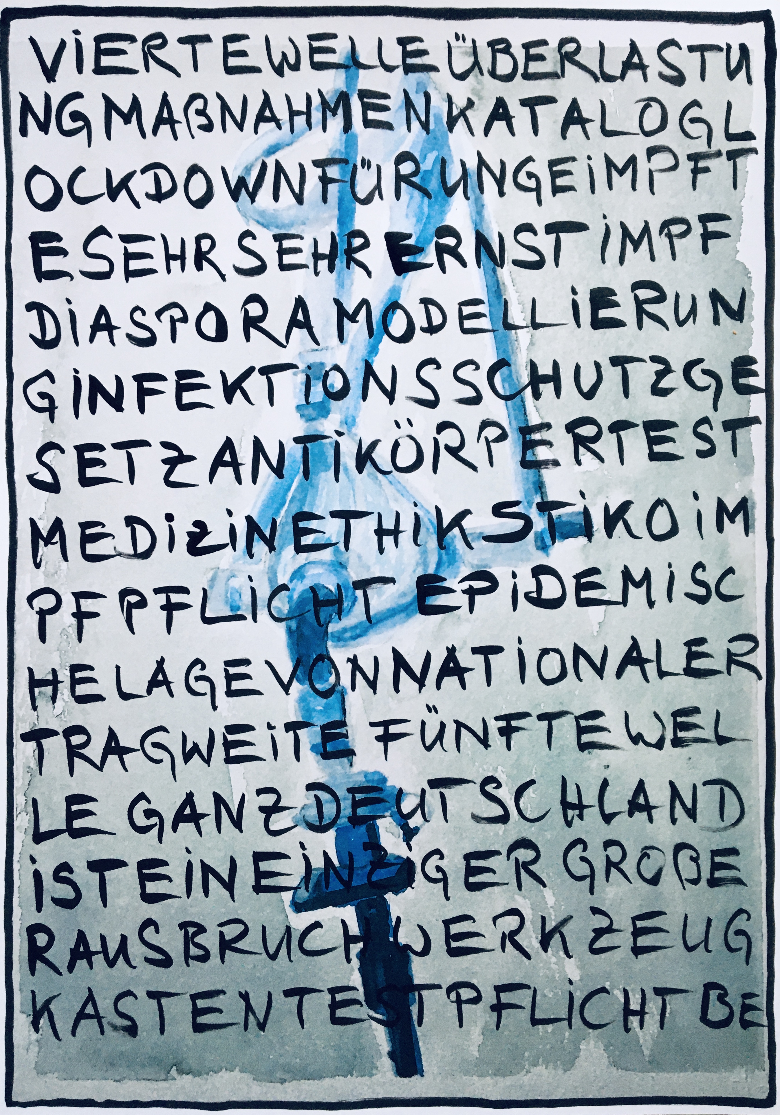 Vierte Welle (Coronawords #7) (2021) 30 x 20, Tusche auf Druck